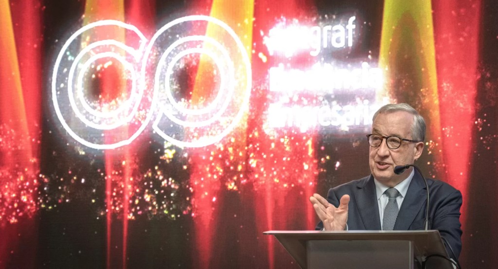 A cerimónia teve início com a exibição de um vídeo institucional, seguindo-se os discursos de abertura. O Presidente da APIGRAF, Lopes de Castro, traçou uma intervenção marcada pela reflexão e inspiração, onde cruzou a análise actual da jornalista Ana Rita Guerra publicada esta semana no Expresso, com excertos da primeira homilia do Papa Leão XIV, sublinhando a importância da responsabilidade colectiva, da coragem em tempos adversos e da necessidade de “ver mais longe do que o imediato”.